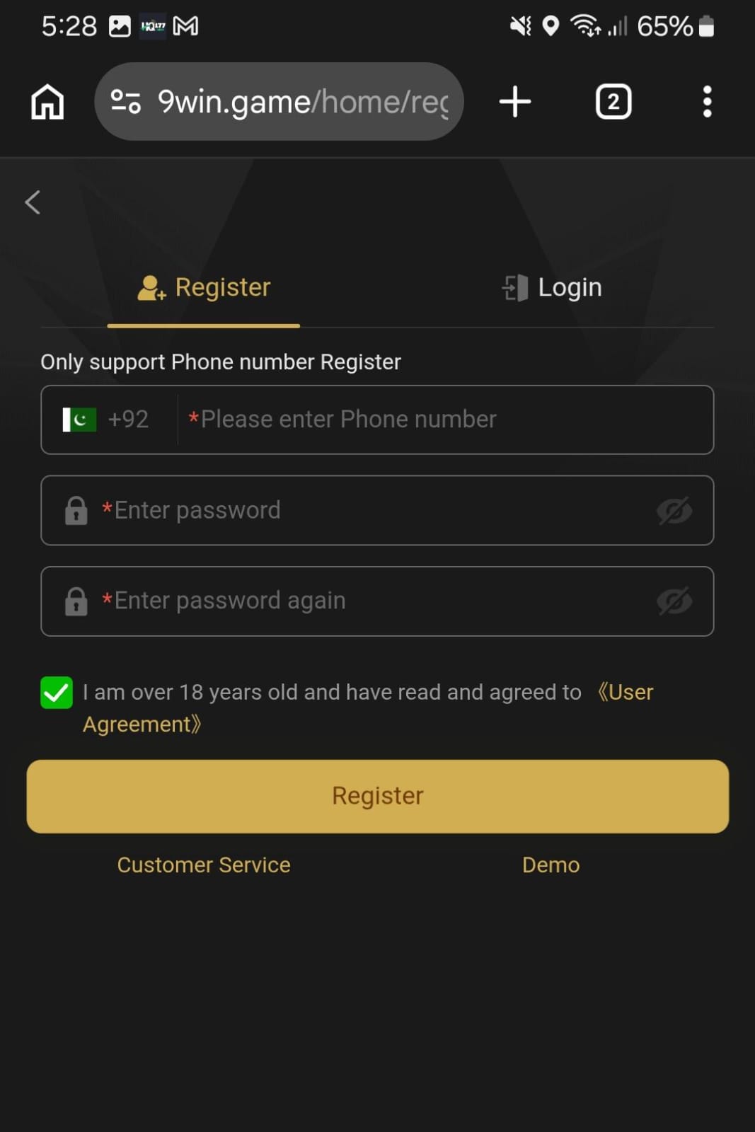 - Lastly, verify your new 9 win game account via verification code.