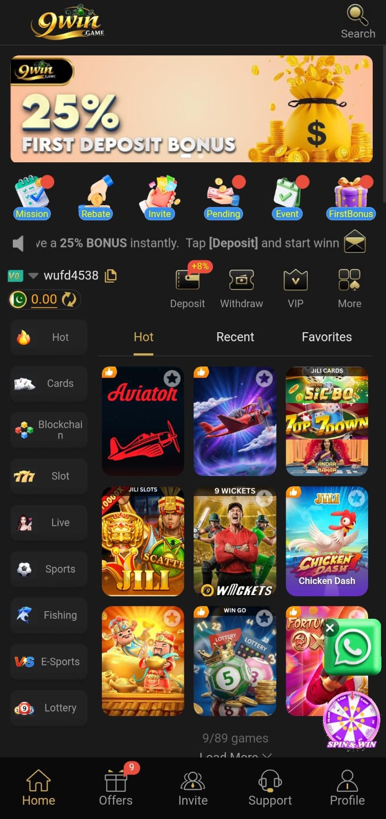 - Firstly, open the 9win casino game app